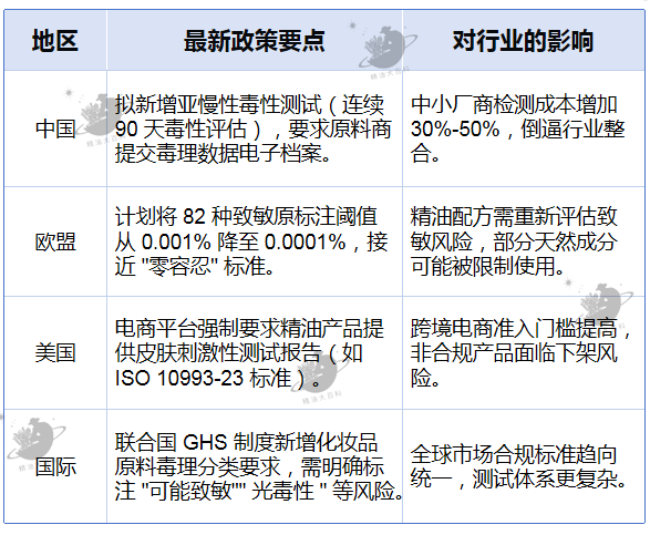 中国、欧盟、美国等主要市场正逐步统一标准,预计3-5年后将逐步要求精油原料提供亚慢性毒性、遗传毒性等中长期安全数据;